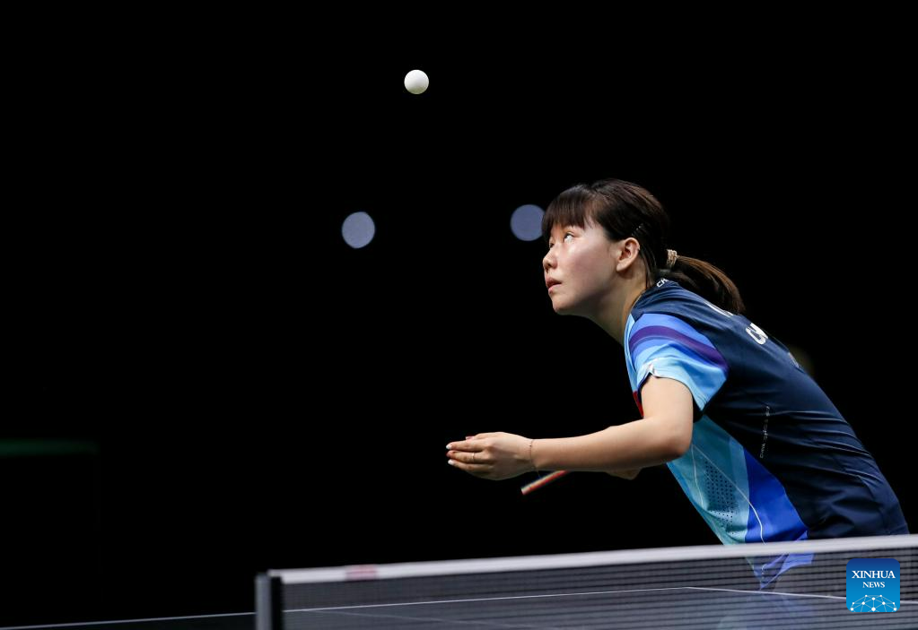 Wang Manyu of China serves during the women's singles quarterfinal against her teammate Chen Xingtong at 2023 ITTF Table Tennis World Championships Finals in Durban, South Africa, May 26, 2023. (Xinhua/Zhang Yudong)