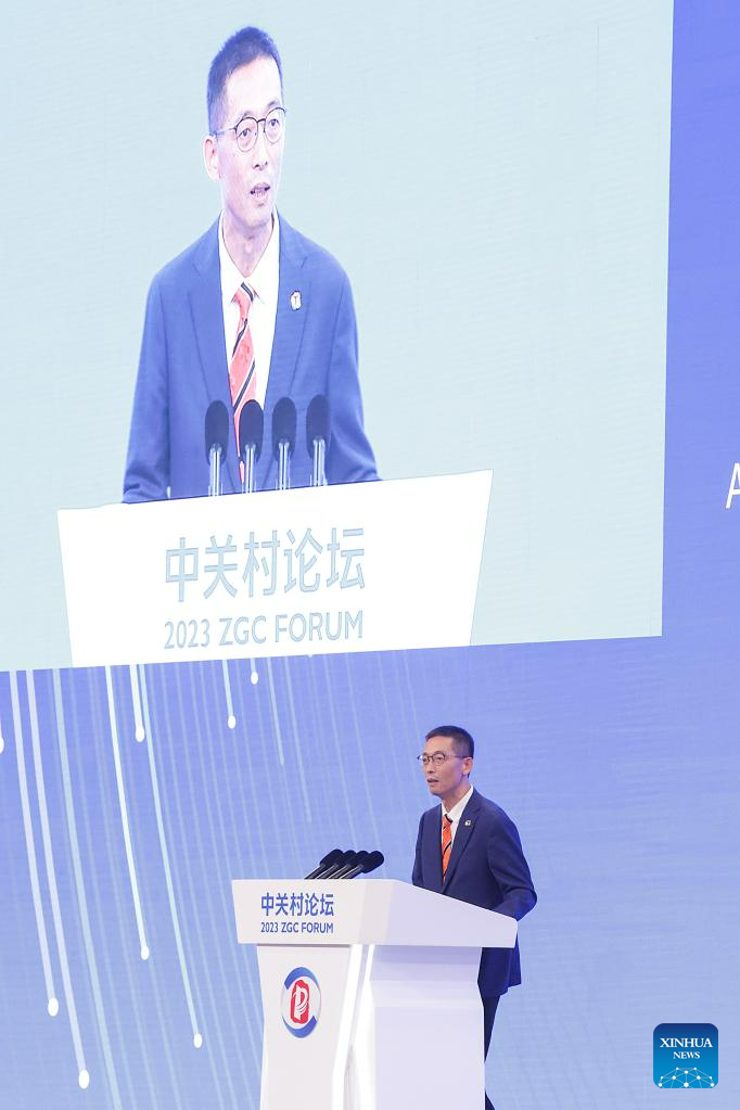 Shi Yigong, an academician of the Chinese Academy of Sciences and president of Westlake University, speaks during the plenary meeting of the 2023 Zhongguancun Forum (ZGC Forum) in Beijing, capital of China, May 26, 2023. Themed "Open Cooperation for a Shared Future," the 2023 Zhongguancun Forum held a plenary meeting here on Friday. (Xinhua/Zhang Yuwei)