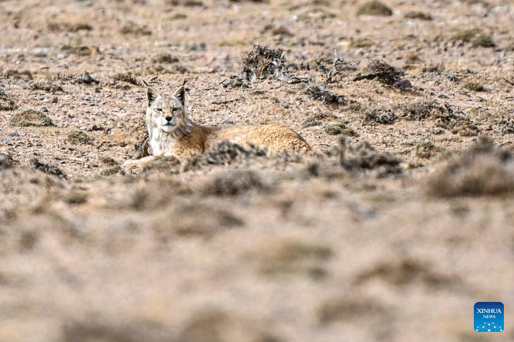 This photo taken on May 25, 2023 shows a lynx at Altun Mountains National Nature Reserve in northwest China's Xinjiang Uygur Autonomous Region. (Xinhua/Ding Lei)