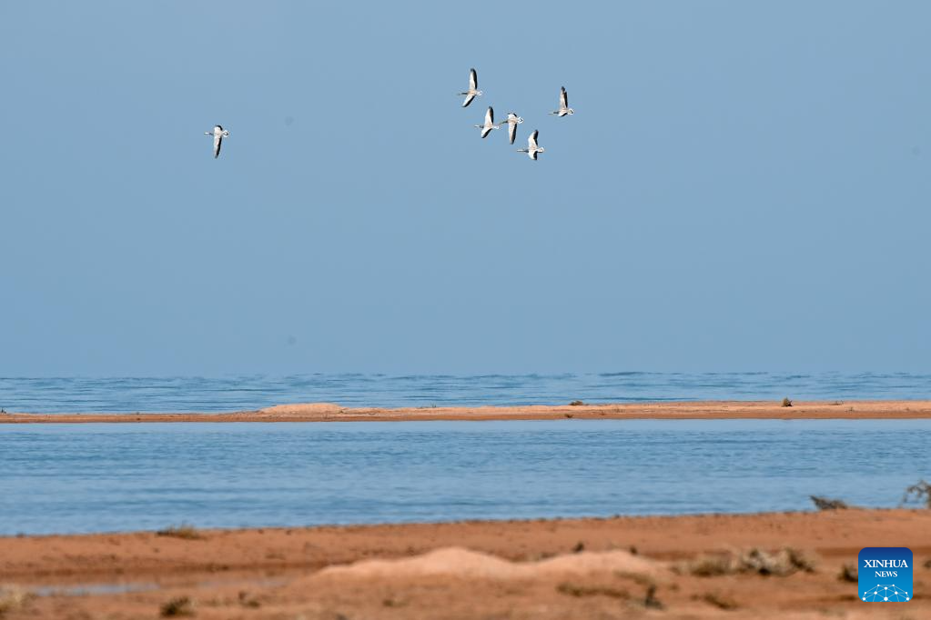 This photo taken on May 23, 2023 shows bar-headed geese at Altun Mountains National Nature Reserve in northwest China's Xinjiang Uygur Autonomous Region. (Xinhua/Ding Lei)
