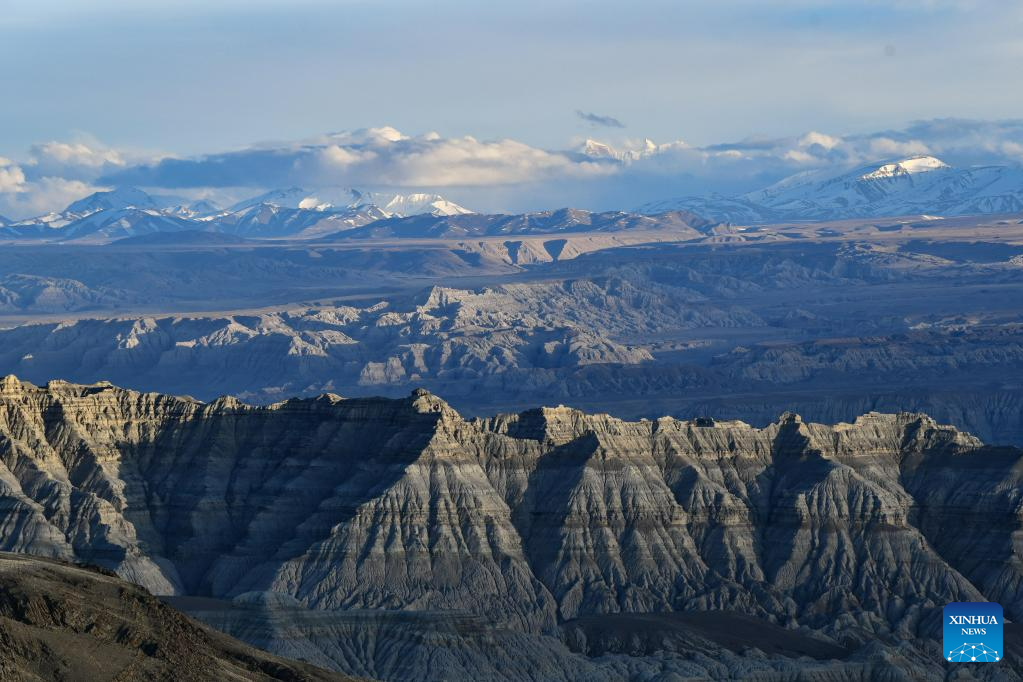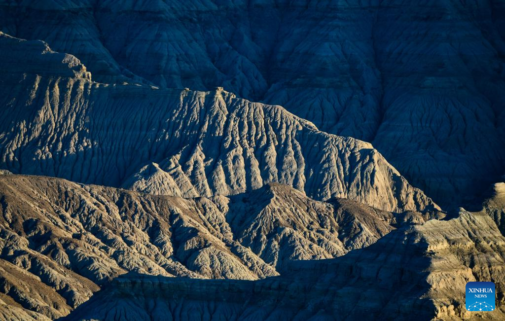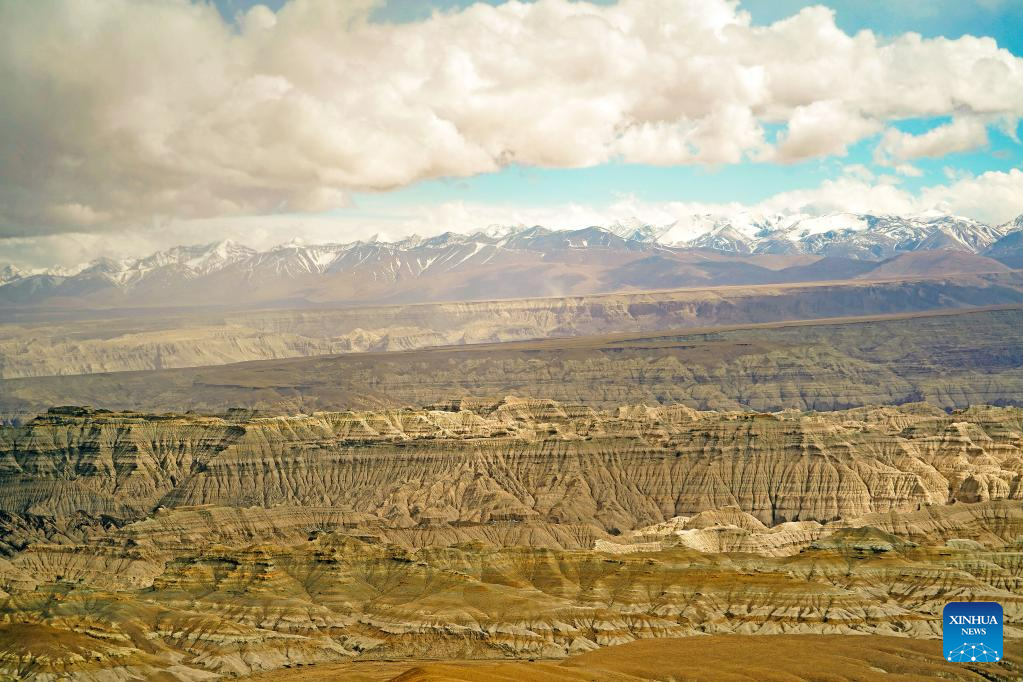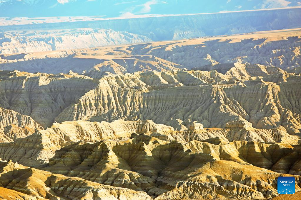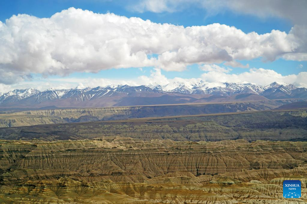 This photo taken on May 25, 2023 shows the landscape of earth forest in Zanda County, southwest China's Tibet Autonomous Region. Zanda is famous for the unique landscape of earth forest, which was formed by geological movement and soil erosion. These "forests" look yellowish, but the color varies in different parts. (Xinhua/Yang Zhisen)