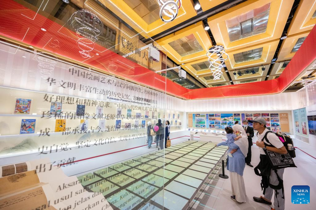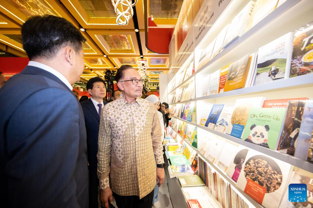 Anwar, accompanied by Zhang, visited the exhibition area of China as the guest of honor. The Malay edition of "Xi Jinping: The Governance of China", and that of a collection of Chinese President Xi Jinping's selected articles, as well as a comprehensive collection of ancient Chinese paintings were introduced to the Malaysian prime minister.