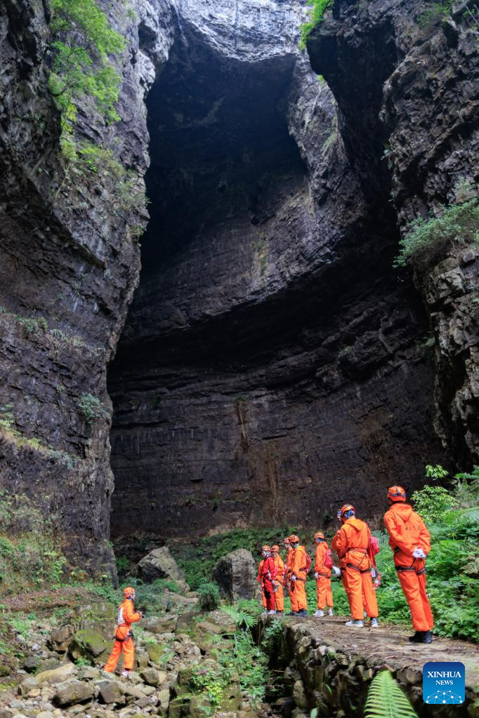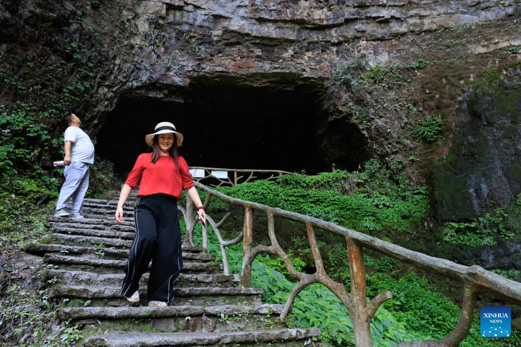 Tourists visit Shuanghe Cave national geological park in Suiyang County, southwest China's Guizhou Province, May 16, 2023. As home to Shuanghe Cave, the longest cave in Asia, Suiyang County has been developing its tourism industry with abundant cave resources in recent year, aiming at meeting diversified demand of tourists. (Xinhua/Liu Xu)