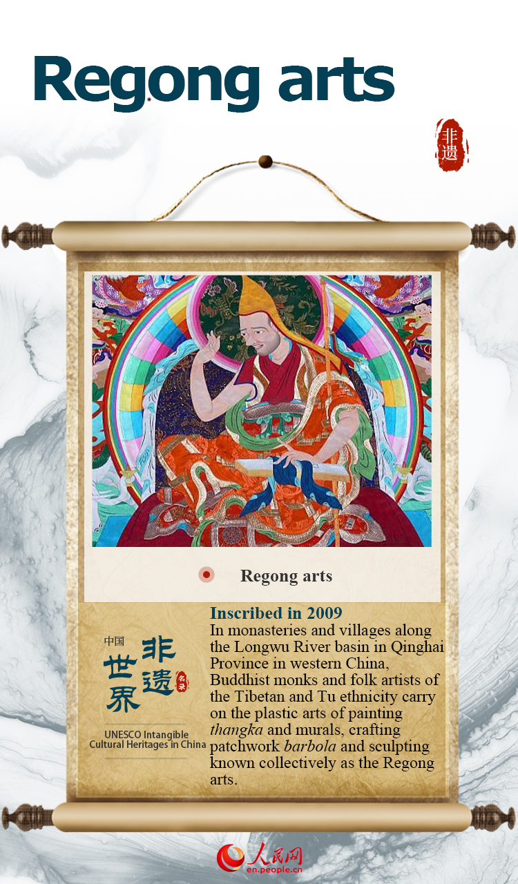 Regong arts was inscribed on UNESCO's Representative List of the Intangible Cultural Heritage of Humanity in 2009.
