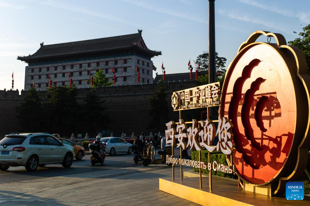 This photo taken on May 16, 2023 shows an installation of the China-Central Asia Summit in Xi'an, northwest China's Shaanxi Province. (Xinhua/Li Jing)