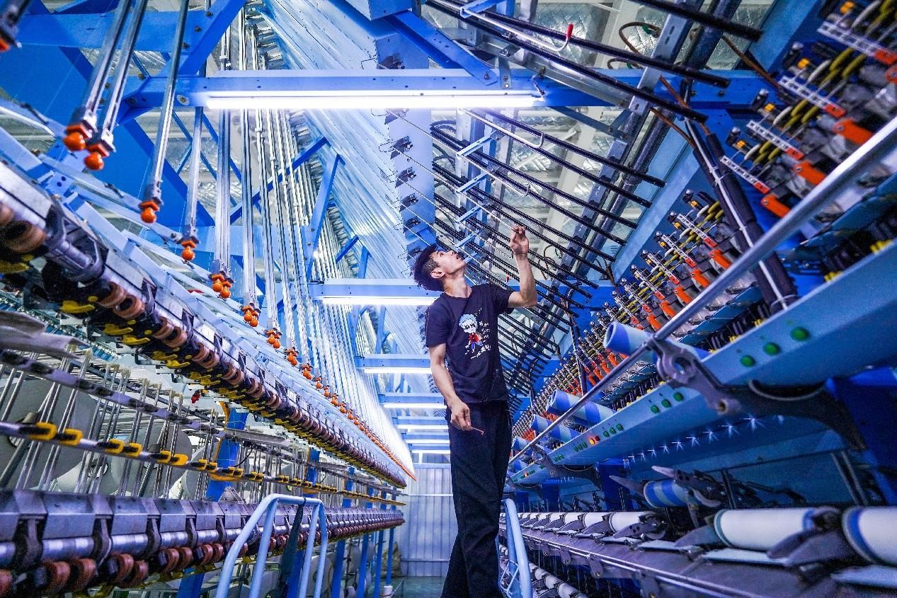 A man works in an intelligent workshop of a textile enterprise in Suqian, east China's Jiangsu province. (People's Daily Online/Chen Shaoshuai)