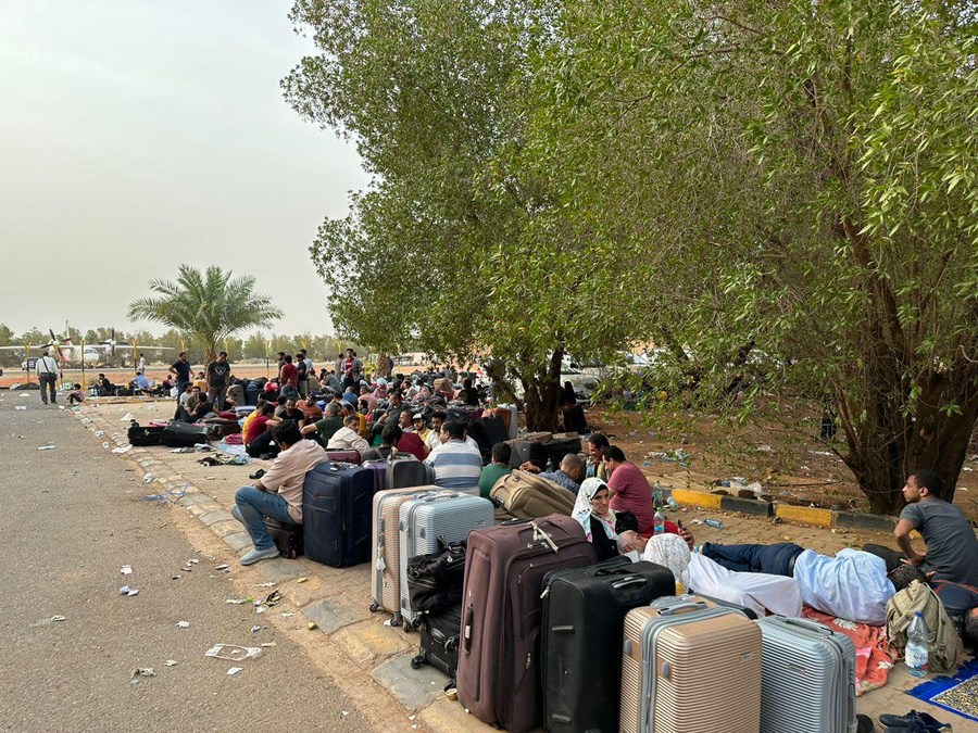 People wait to be evacuated near an airport in Omdurman, Sudan, April 26, 2023. (Xinhua)