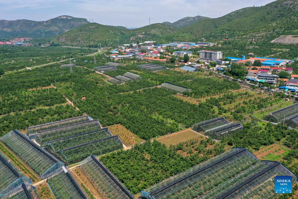 This aerial photo taken on May 31, 2023 shows cherry orchards in Yanya Township of Yiyuan County, east China's Shandong Province. (Xinhua/Zhu Zheng)
