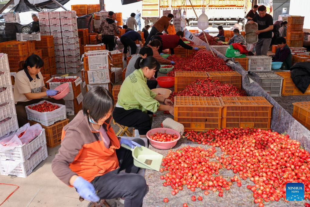 Located in the hinderland of Yimeng Mountain, Yanya Township has been planting cherries since 1992. After more than 30 years of development, the planting area of cherry has reached 60,000 mu (4,000 hectares), making Yanya Township a famous "Cherry Town". In 2022, the transaction volume of the Yanya cherry market hit 712 million yuan. (Xinhua/Zhu Zheng)
