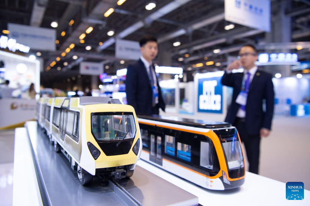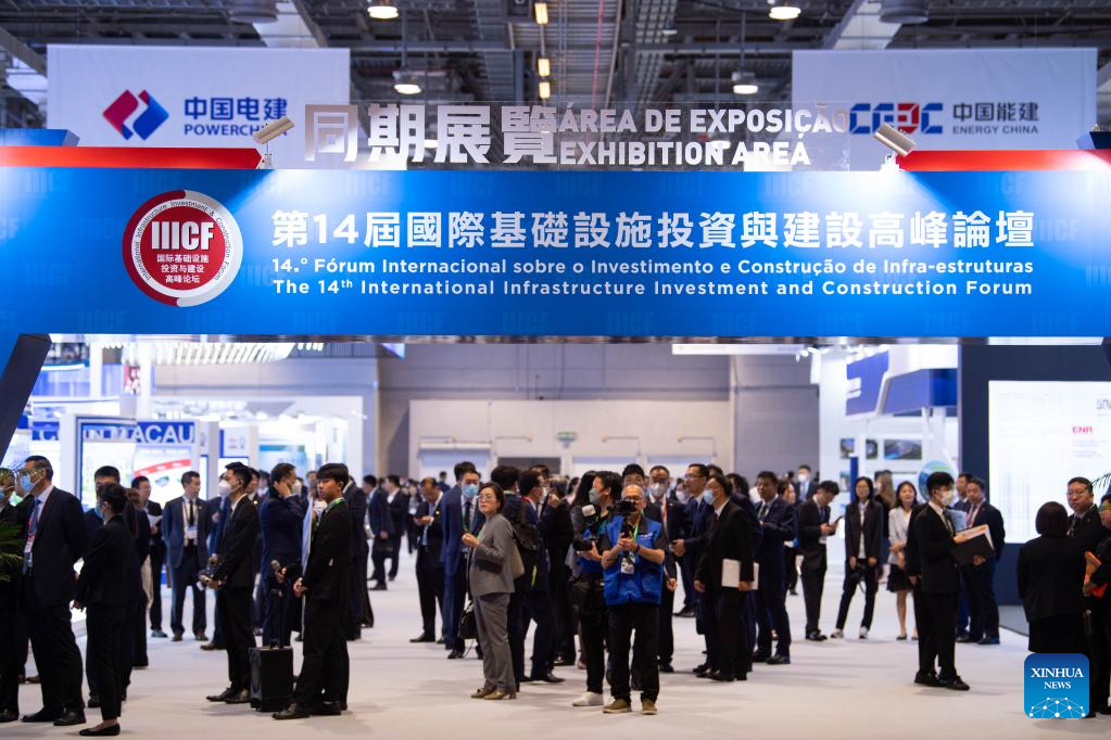 Attendees visit an exhibition during the 14th International Infrastructure Investment and Construction Forum in Macao, south China, June 1, 2023. (Xinhua/Cheong Kam Ka)