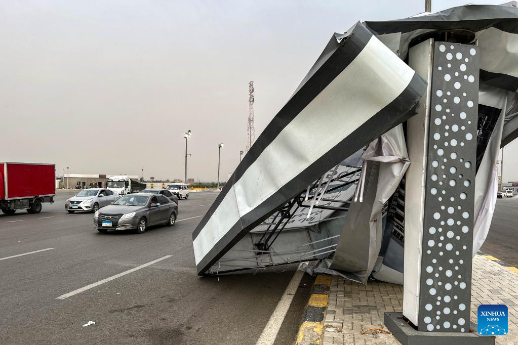 Photo taken on June 1, 2023 shows billboards collapsed in a sandstorm in Cairo, Egypt. One person was killed and five others were wounded in the Egyptian capital of Cairo as a massive sandstorm hit several parts of Egypt on Thursday. (Xinhua/Ahmed Gomaa)