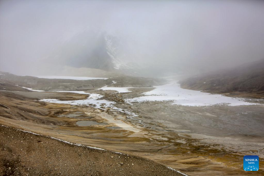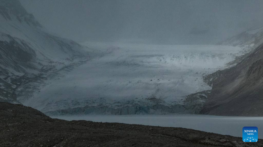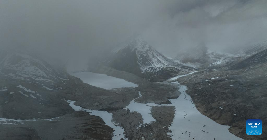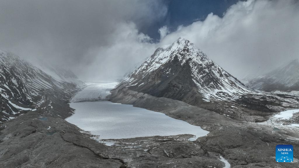 This photo taken on May 31, 2023 shows a view of the Gyaimaryangzhong Glacier in southwest China's Tibet Autonomous Region. The Gyaimaryangzhong Glacier is the source of the Yarlung Zangbo River, China's longest plateau river. (Xinhua/Shao Zedong)