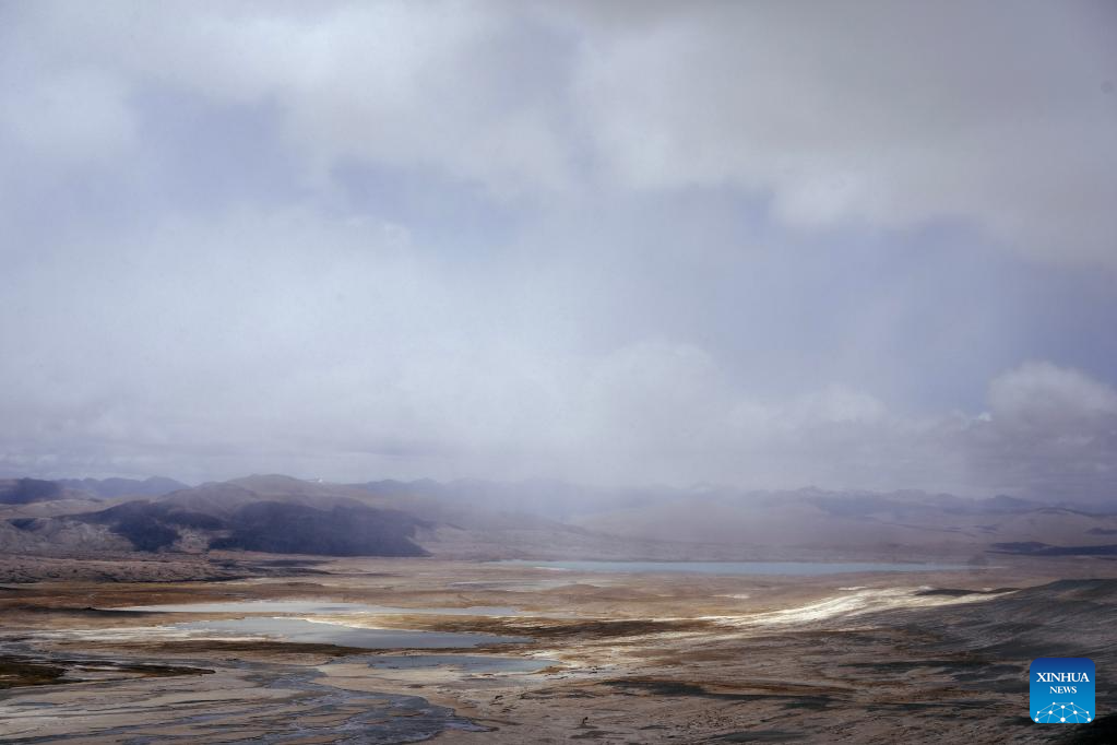 This aerial photo taken on May 31, 2023 shows the river bed at the foot of the Gyaimaryangzhong Glacier in southwest China's Tibet Autonomous Region. The Gyaimaryangzhong Glacier is the source of the Yarlung Zangbo River, China's longest plateau river. (Xinhua/Jigme Dorje)