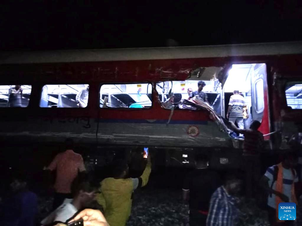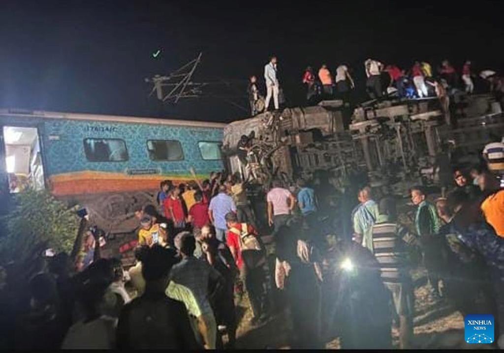 NEW DELHI, June 3 (Xinhua) -- More than 200 people were killed and 900 others injured in a major accident Friday evening involving three trains in the eastern Indian state of Odisha, officials said on Saturday.
