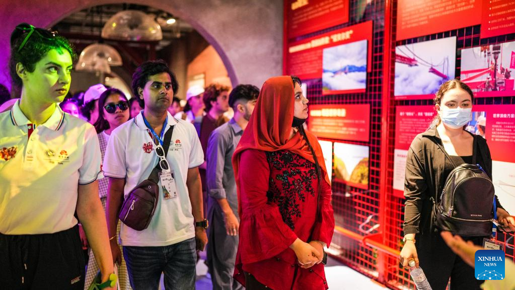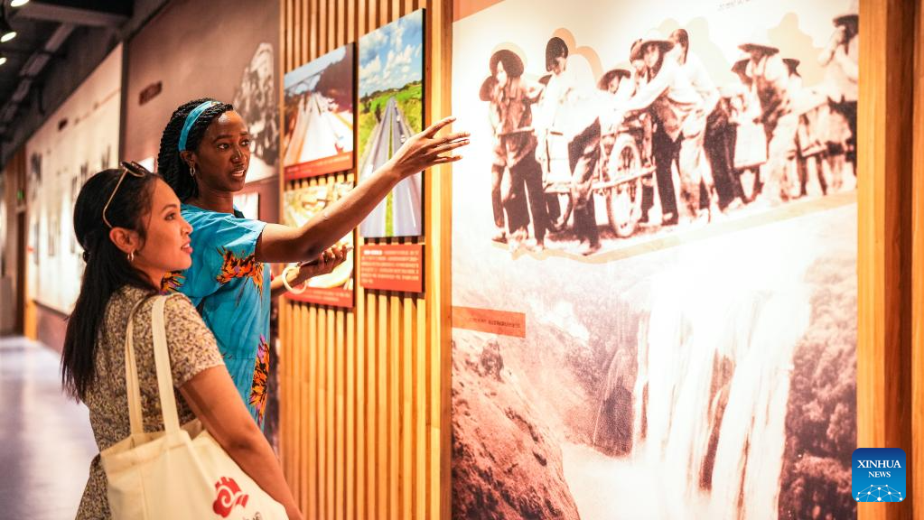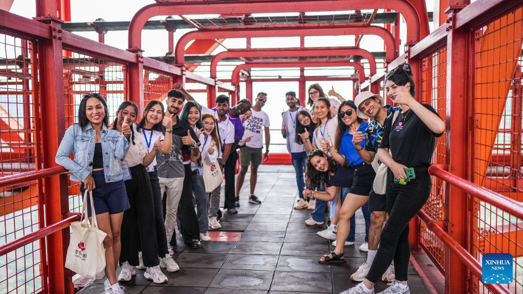 International students visit Guizhou Communications Polytechnic in Guiyang, southwest China's Guizhou Province, June 2, 2023. A total of 40 international students from 24 countries have recently attended a culture promotion activity to learn about Guizhou Province, especially its achievements in transport infrastructure construction and rural revitalization. (Xinhua/Tao Liang)