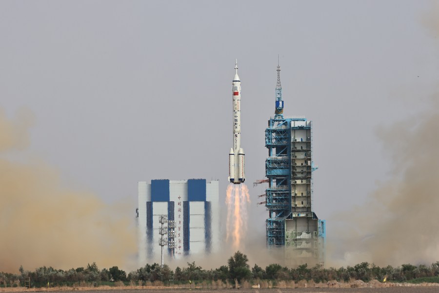 The Shenzhou-16 manned spaceship, atop a Long March-2F carrier rocket, is launched from the Jiuquan Satellite Launch Center in northwest China, May 30, 2023. (Xinhua/Li Gang)