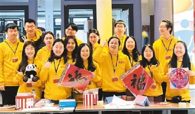 Wang Xinhui (second from left in the front row) and her schoolmates celebrate the Spring Festival in the Netherlands. (Photo courtesy of the interviewee)