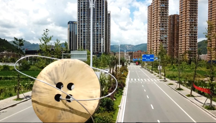 Photo shows a button-shaped sculpture in Qiaotou township, Yongjia county, Wenzhou, east China's Zhejiang province. (Photo from the official account of the information office of the government of Yongjia county)