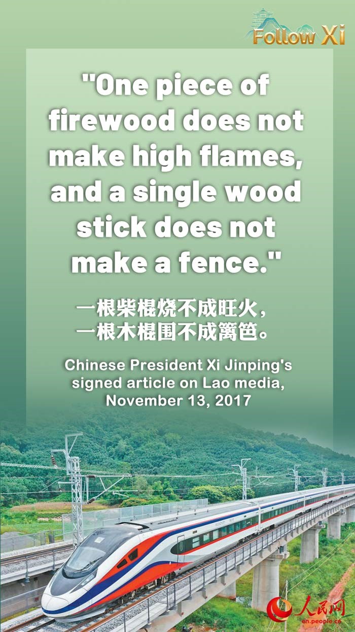As a Lao saying goes, one piece of firewood does not make high flames, and a single wood stick does not make a fence. The Chinese believe that people, if united, are as strong as a fortress, and flame runs high if everyone adds wood to it. I am convinced that as long as our two countries trust each other and work together, we will create an even better future for our bilateral relations.