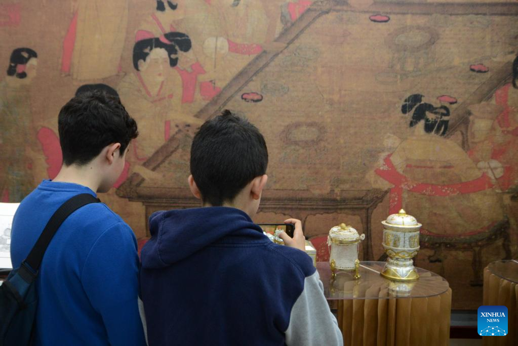 People visit the "Ancient Tea with New Glamour" exhibition in Valletta, Malta, on June 6, 2023. An exhibition showcasing the tea culture of Xi'an, Shaanxi Province in northwest China, commenced on Tuesday at the China Cultural Centre in Malta. (Photo by Jonathan Borg/Xinhua)