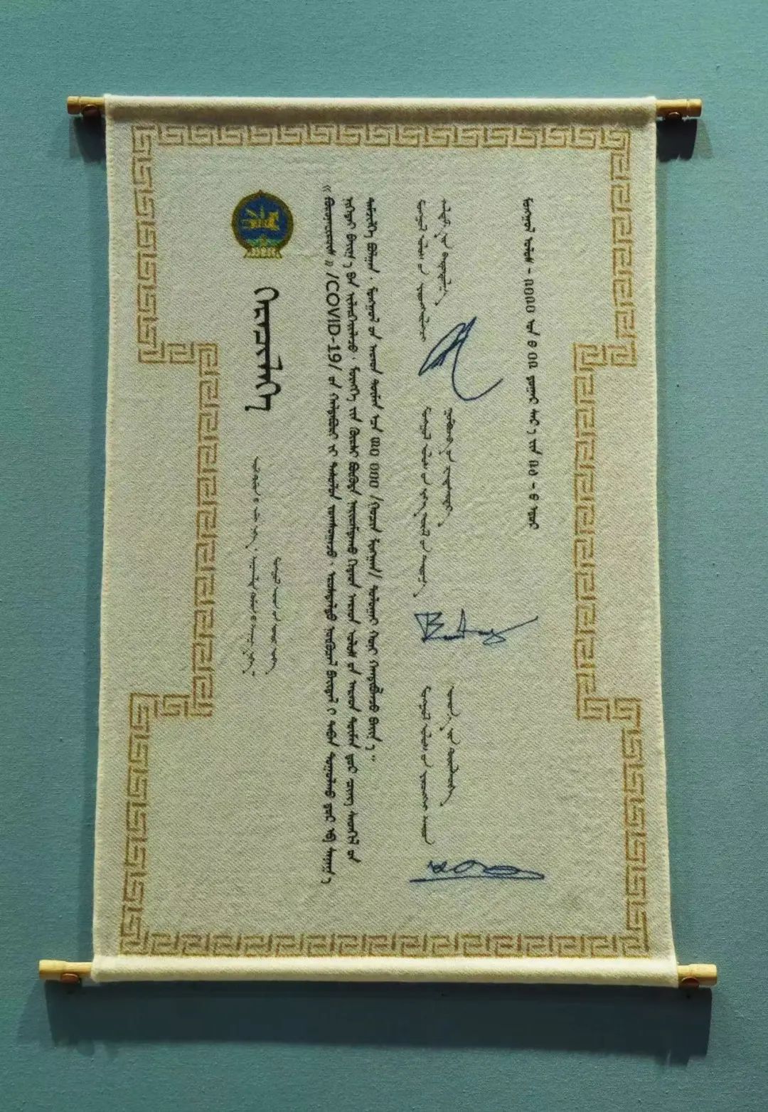 Photo shows a parchment presented by Khaltmaa Battulga, then president of Mongolia, to Chinese President Xi Jinping in February 2020 as the certificate for the donation of 30,000 sheep from Mongolia to China to support China's fight against COVID-19. (Photo/Hu Yang)