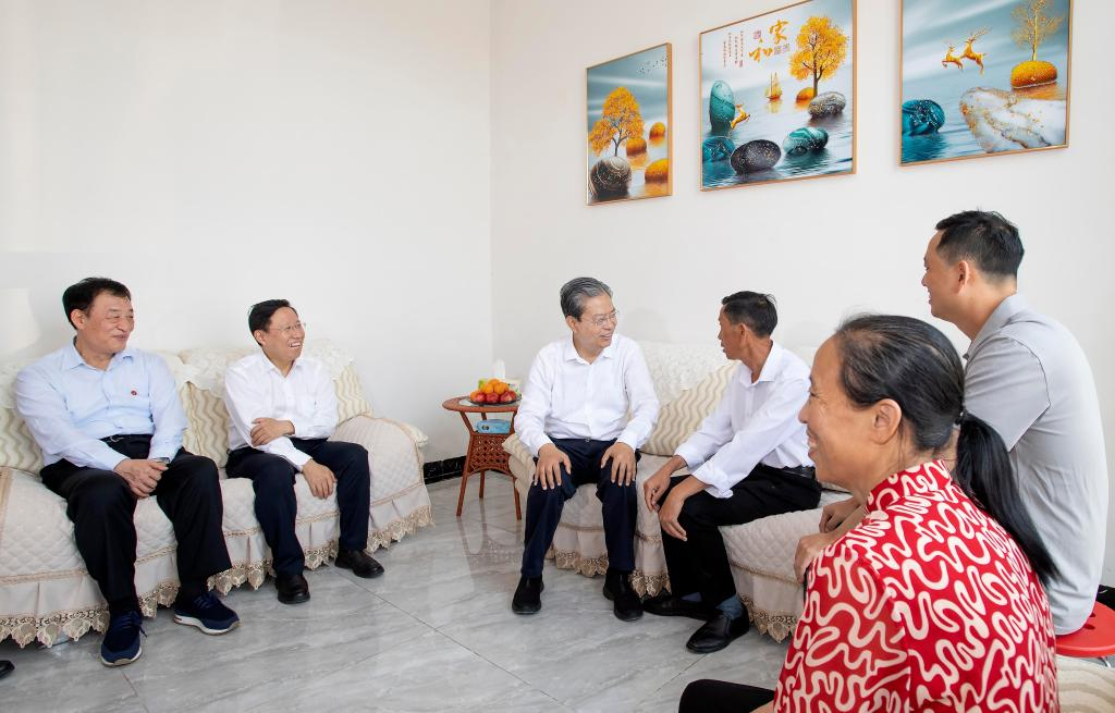 Zhao Leji, a member of the Standing Committee of the Political Bureau of the Communist Party of China Central Committee and chairman of the National People's Congress Standing Committee, visits a rice farmer's home in Tashui Town of Anzhou District in Mianyang City, southwest China's Sichuan Province, June 9, 2023. Zhao made a research tour in southwest China's Sichuan Province from Tuesday to Friday. Leading an inspection team, Zhao examined the enforcement of the Seed Law in several cities in Sichuan. (Xinhua/Li Tao)