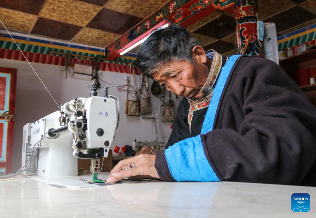 In 2015, Thomai Village established a local project to preserve the craft of making traditional saddlebags. The village received about 450,000 yuan (about 64,000 U.S. dollars) in funding to build and renovate workshops, purchase raw materials and enrich the existing products, thus forming a complete industrial chain, said Tsering Dondrup, director of the federation of trade unions in Nang County.