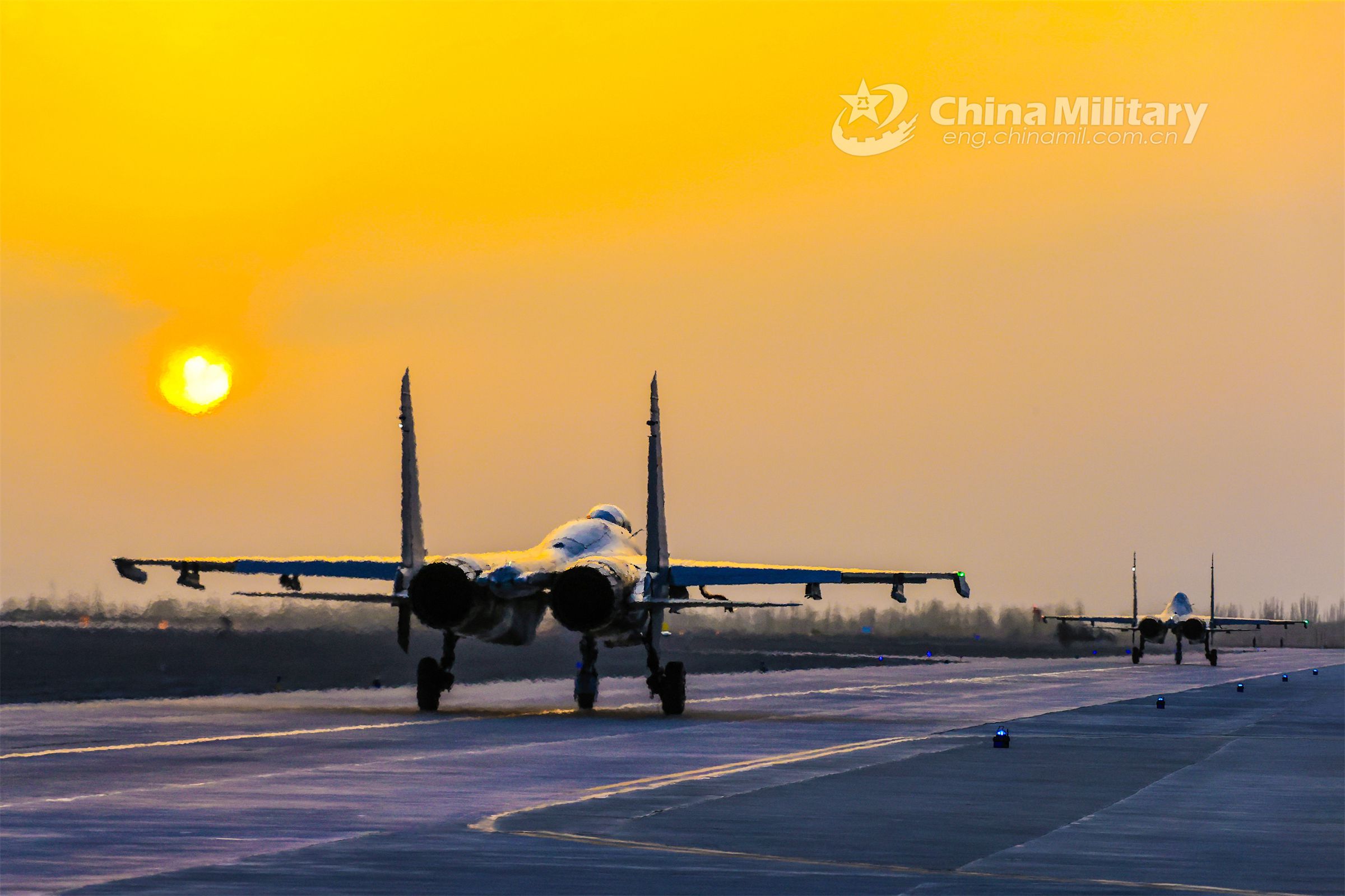 Fighter jets attached to a brigade under the PLA Air Force Xi'an Flying College taxi on the runway during a round-the-clock training mission in early June, 2023. (eng.chinamil.com.cn/Photo by Cui Baoliang)