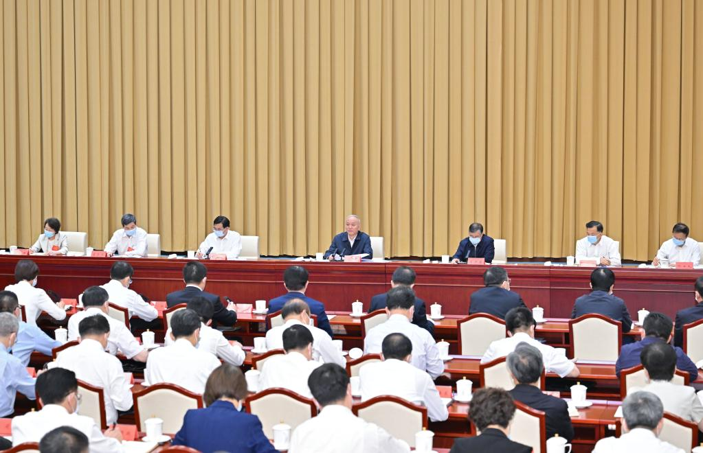 Cai Qi, a member of the Standing Committee of the Political Bureau of the Communist Party of China (CPC) Central Committee and a member of the Secretariat of the CPC Central Committee, addresses a meeting on the implementation of Xi Jinping's speech on cultural inheritance and development in Beijing, capital of China, June 9, 2023. (Xinhua/Yue Yuewei)