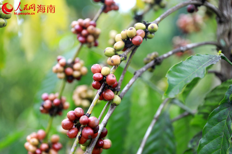 Coffee fruits on the tree in Hainan. (People's Daily Online/Meng Fansheng)