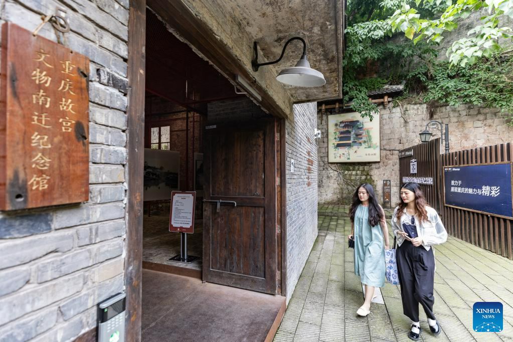 Tourists visit a museum displaying the history of Palace Museum antiques moved there during World War II in southwest China's Chongqing, June 10, 2023. The museum is located in a former foreign firm, where nearly 4,000 cases of antiques were stored during wartime.
