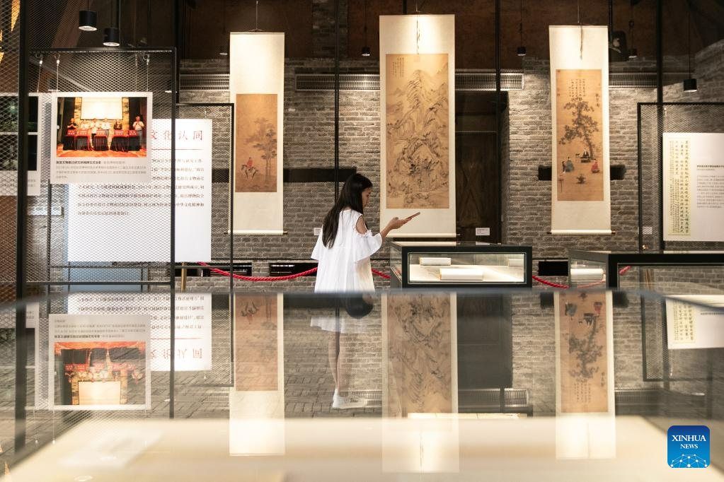 Tourists visit an exhibition at a museum displaying the history of Palace Museum antiques moved there during World War II in southwest China's Chongqing, June 9, 2023. The museum is located in a former foreign firm, where nearly 4,000 cases of antiques were stored during wartime.