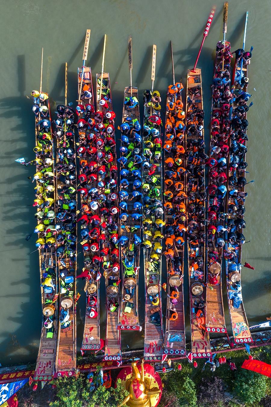 Prepared contestants eagerly anticipate the start of a dragon boat race in Huadi village, Putian, southeast China's Fujian Province. (Photo/Cai Hao)