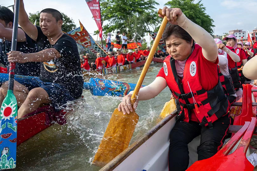 Contestants participate in a dragon boat race in Huadi village, Putian, southeast China's Fujian Province. (Photo/Cai Hao)