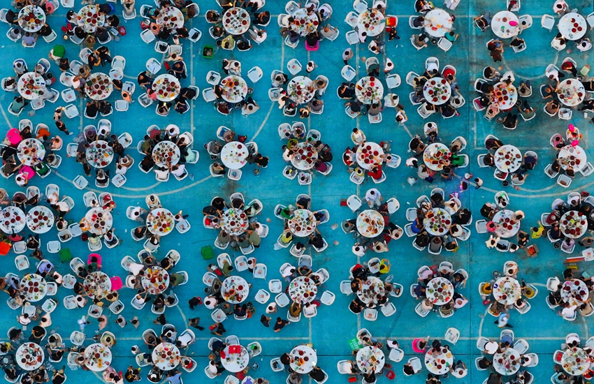 Aerial photo shows a crayfish banquet held in Xuyi county, Huai'an, east China's Jiangsu Province. (Photo/Xu Changyin)