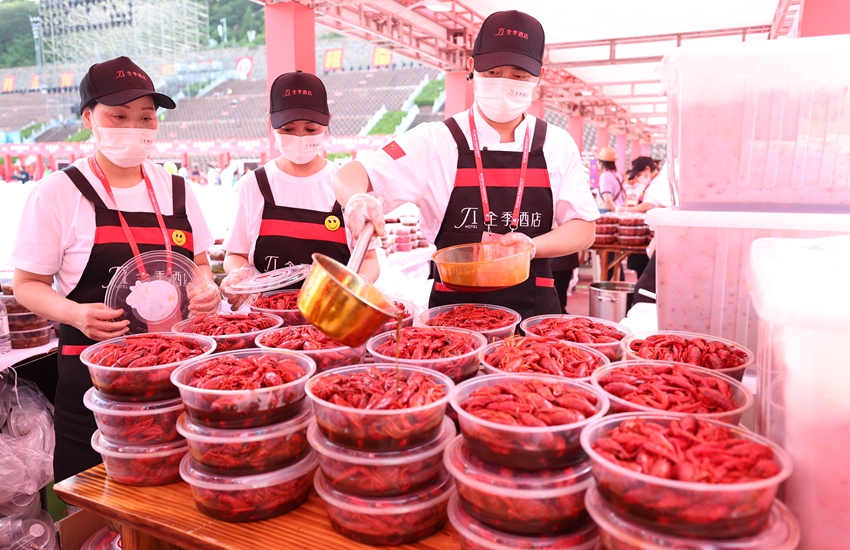 A massive crayfish banquet was held in Xuyi county, Huai'an, east China's Jiangsu Province, on the evening of June 13. The event saw approximately 40 tons of crayfish consumed by over 10,000 attendees.