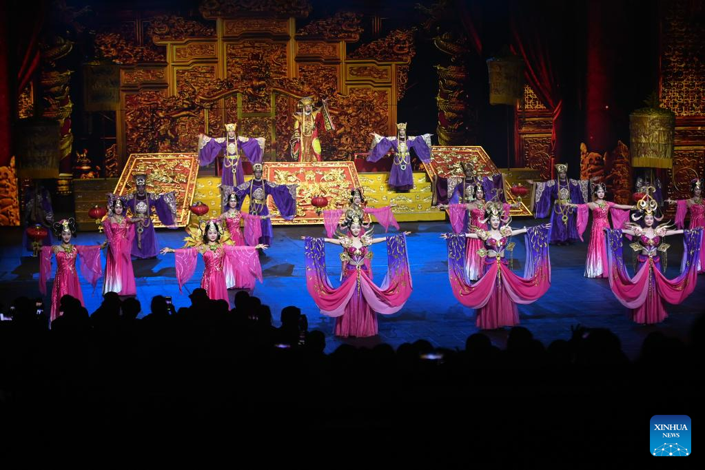 People watch a performance at a scenic spot in Hangzhou, east China's Zhejiang Province, March 20, 2023.