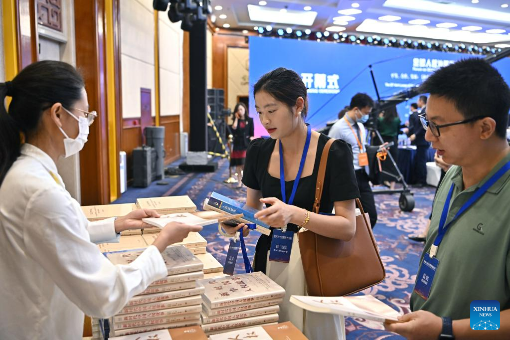 Participants receive relevant books during the Forum on Global Human Rights Governance in Beijing, capital of China, June 14, 2023. The Forum on Global Human Rights Governance opened in Beijing on Wednesday. (Xinhua/Li Xin)