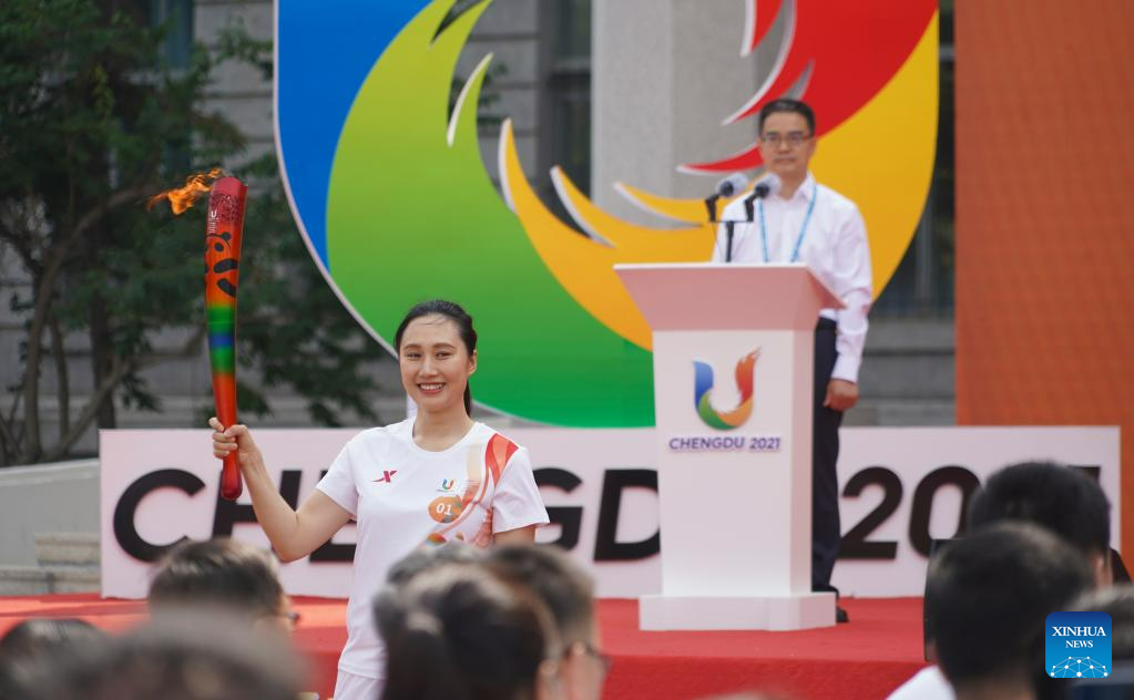 Students peform before the torch relay of the Chengdu 2021 FISU Summer World University Games at Harbin Institute of Technology in Harbin, northeast China's Heilongjiang Province, June 15, 2023. (Xinhua/Zhang Tao)