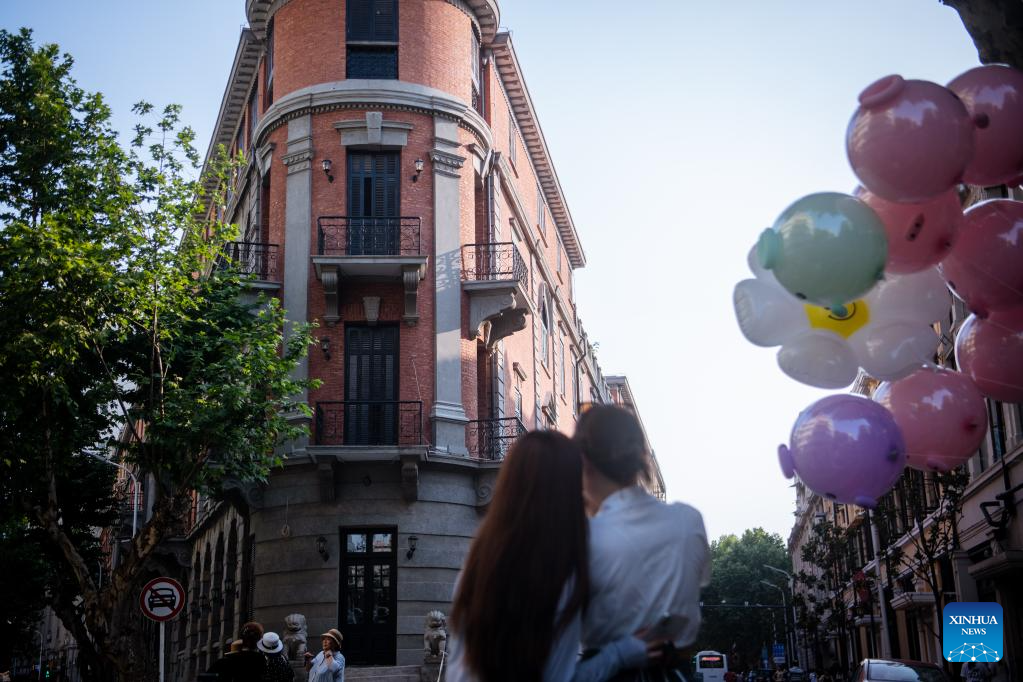 Tourists visit a building in Hankou historical area of Wuhan, central China's Hubei Province, June 6, 2023. Covering an area of 6.02 square kilometers, the Hankou historical area in the heart of Wuhan City's old town, boasts an abundance of historical and cultural heritages.