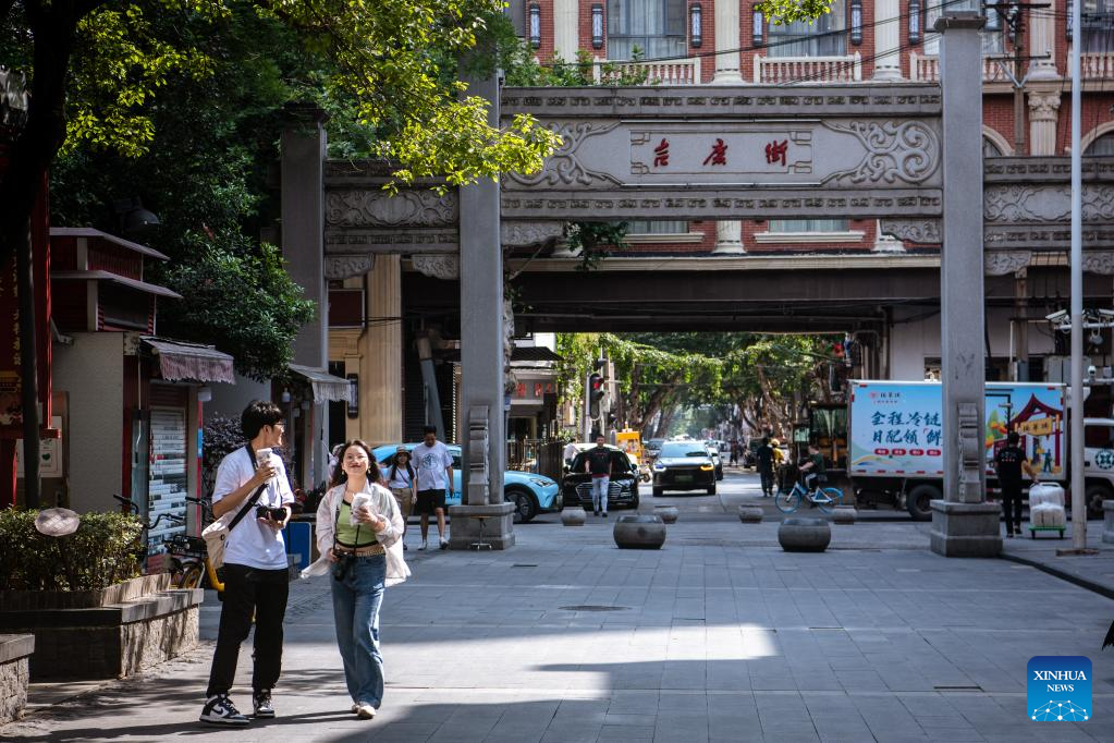 Tourists visit Jiqing Street of Hankou historical area in Wuhan, central China's Hubei Province, June 6, 2023. Covering an area of 6.02 square kilometers, the Hankou historical area in the heart of Wuhan City's old town, boasts an abundance of historical and cultural heritages.