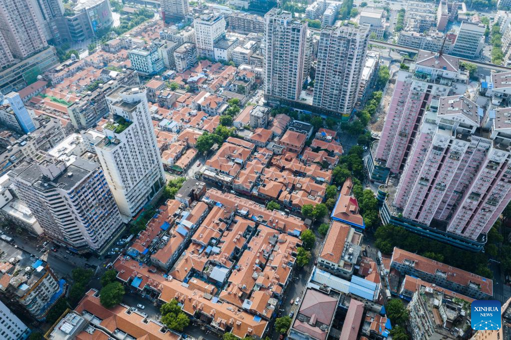 This aerial photo taken on June 6, 2023 shows a corner of Hankou historical area in Wuhan, central China's Hubei Province. Covering an area of 6.02 square kilometers, the Hankou historical area in the heart of Wuhan City's old town, boasts an abundance of historical and cultural heritages.