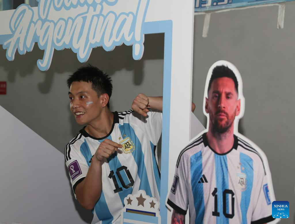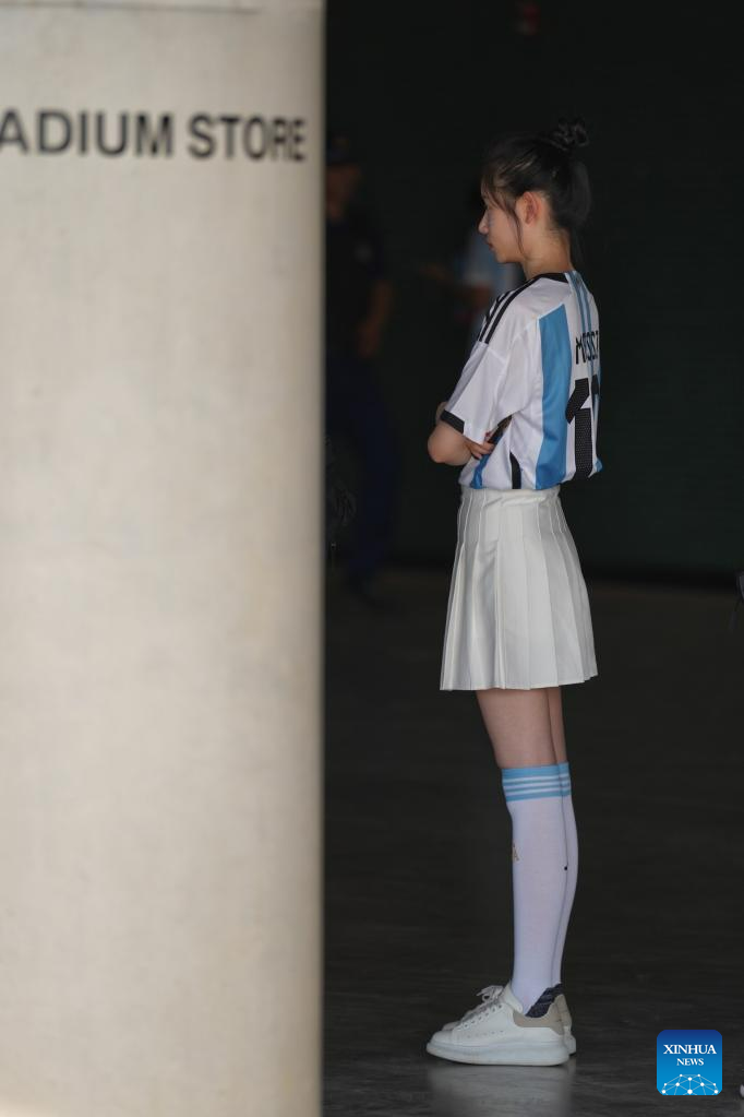 A fan is seen ahead of an international football invitational between Argentina and Australia in Beijing, capital of China, June 15, 2023. (Xinhua/Jia Haocheng)