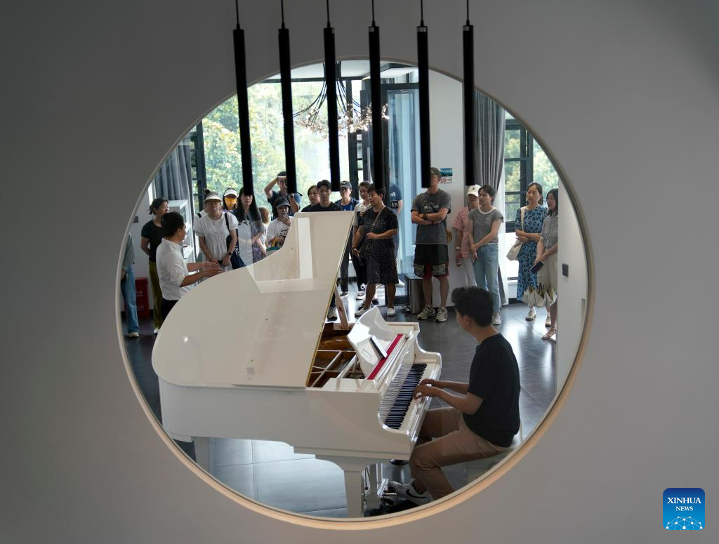 Owners and operators of homestay visit a music-themed homestay in Liaoyuan Village, Moganshan Town, Deqing County, east China's Zhejiang Province, June 15, 2023. Deqing County on Thursday offered a training program to the owners and operators of local homestays to further improve services. The county has witnessed an ongoing growth of premium homestays, most notably in Moganshan Town. In 2022, homestay operator was added to China's list of new occupations by the Ministry of Human Resources and Social Security. (Xinhua/Han Chuanhao)
