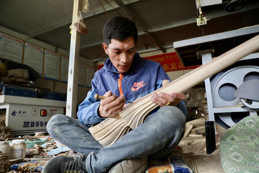 Norbu Tseten's son makes a piece of Zhanian. (People's Daily Online/Tersing Norbu)