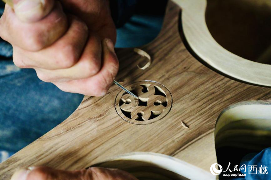 Norbu Tseten's son makes a piece of Zhanian. (People's Daily Online/Tersing Norbu)
