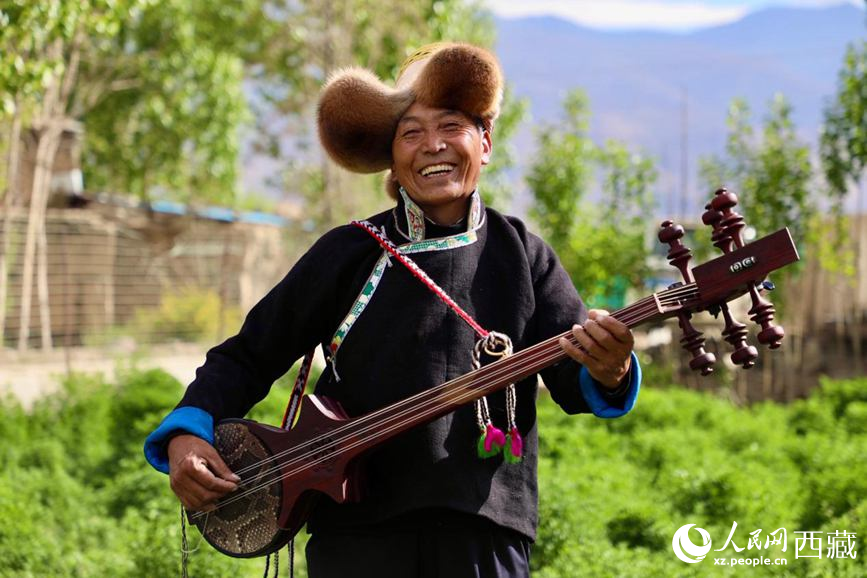 Norbu Tseten plays the Zhanian. (People's Daily Online/Tersing Norbu)