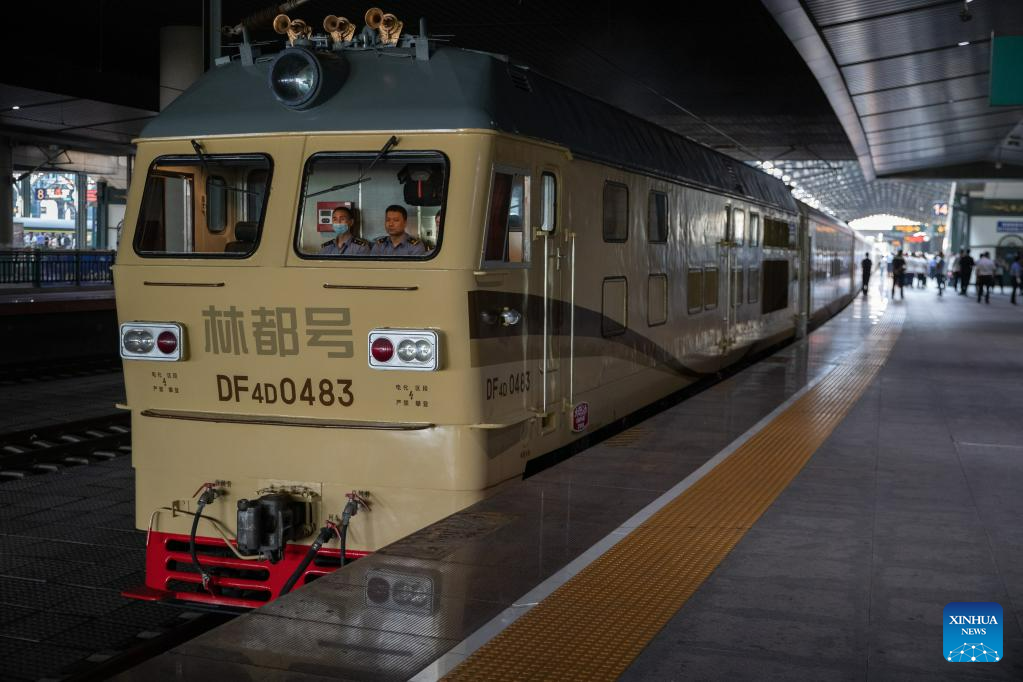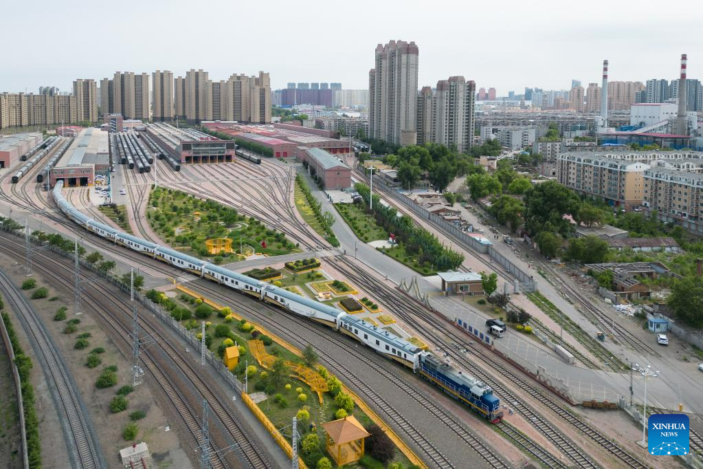 A tourist train is seen at Harbin Railway Station in Harbin, northeast China's Heilongjiang Province, June 18, 2023.?(Xinhua/Zhang Tao)