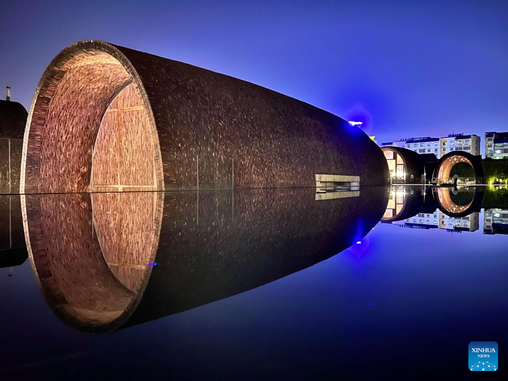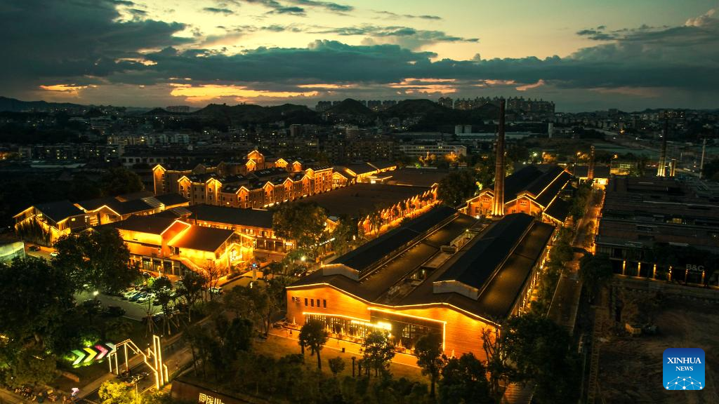 This photo taken on May 15, 2023 shows a night view of Jingdezhen Imperial Kiln Institute in Jingdezhen, east China's Jiangxi Province. (Xinhua/Lu Zhe)?