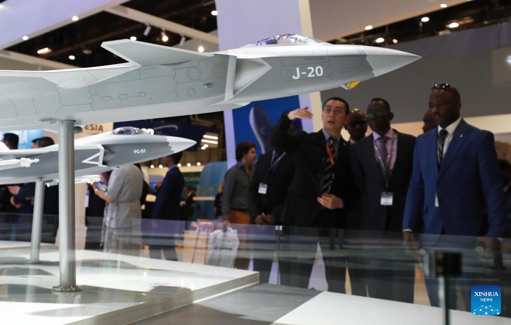 People visit the stand of Aviation Industry Corporation of China (AVIC) at the 54th International Paris Air Show held at Le Bourget Airport near Paris, France, June 19, 2023. The 54th International Paris Air Show kicked off here on Monday and will last to June 25, 2023. (Xinhua/Gao Jing)